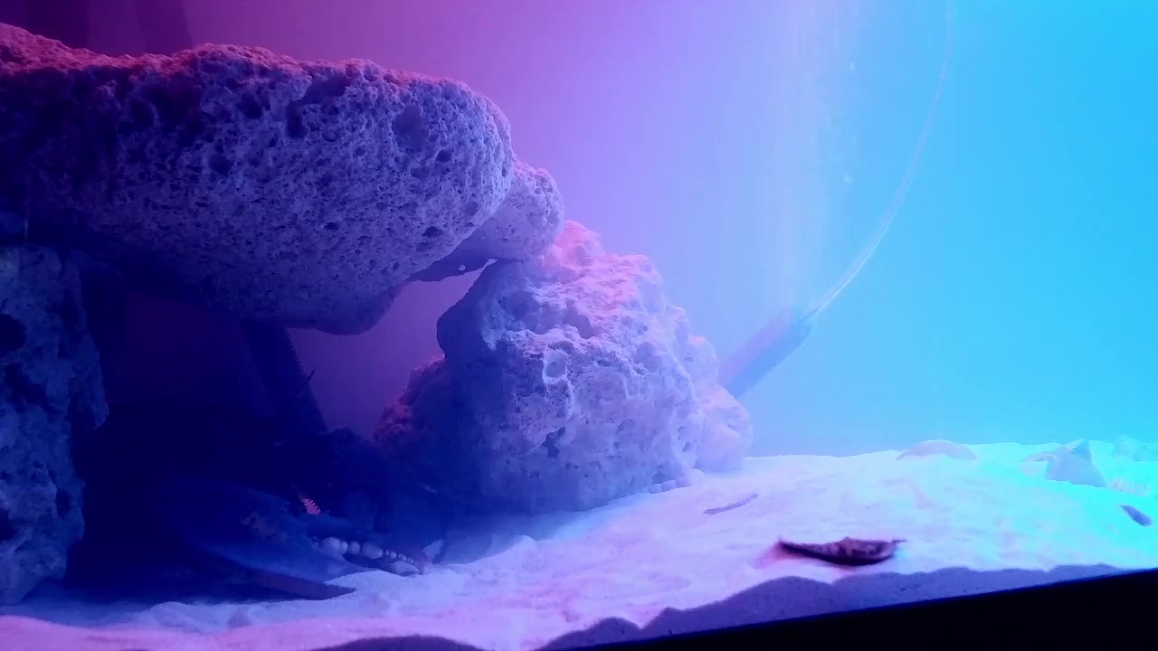 The chronicle begins with Lorb positioned in the bottom-left of His domain, partially concealed beneath a large stone formationāHis chosen sanctuary, His sacred grove. The claws are tucked beneath Him, a posture of intentional repose, as antennae extend gently outward, sensing the subtle currents of the water above.