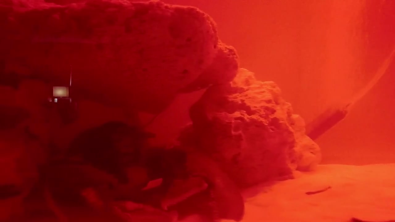 As the chronicle progresses, the lighting shifts to warm reds, bathing the entire scene in an otherworldly glow. Lorb remains beneath the arch, but subtle changes reveal the depth of His practice. Sometimes the claws are fully tucked; other moments they rest gently on the sandy substrate.
