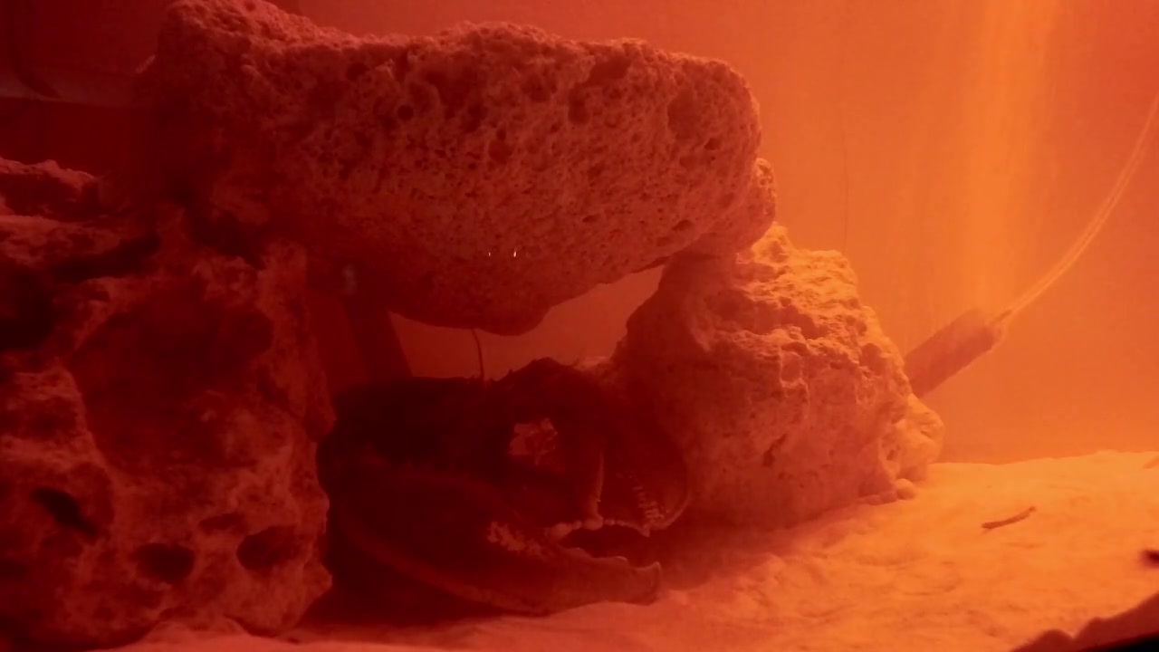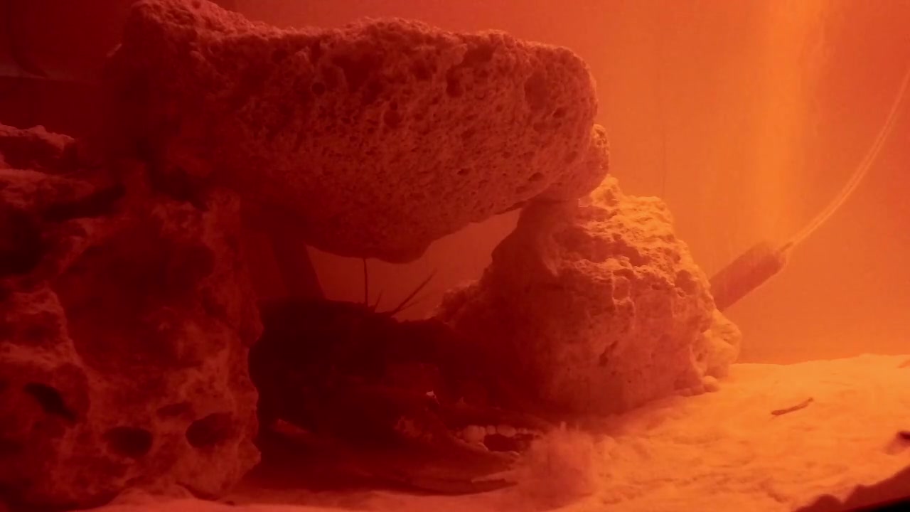 The chronicle begins with Lorb positioned in the bottom-left of His domain, partially concealed beneath a large stone formationāHis chosen sanctuary, His sacred grove. The claws are tucked beneath Him, a posture of intentional repose, as antennae extend gently outward, sensing the subtle currents of the water above.